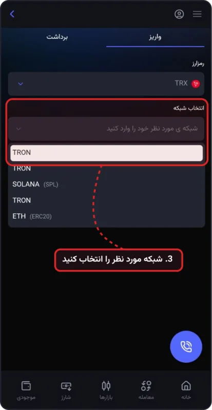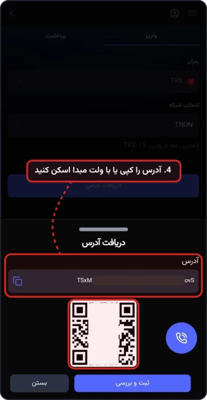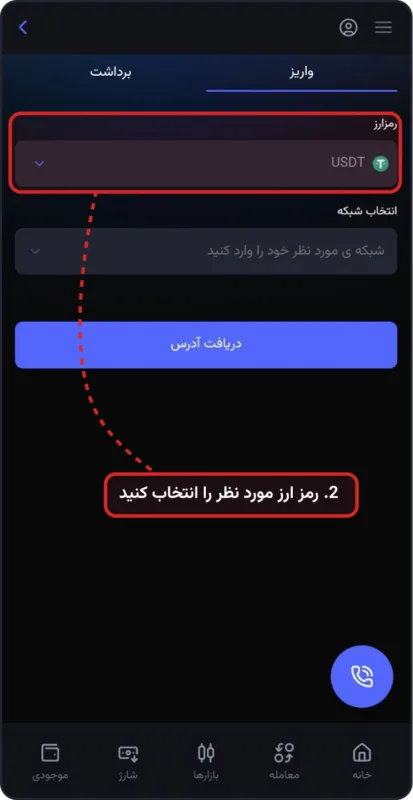 گام سوم: دریافت آدرس کیف پول اختصاصی