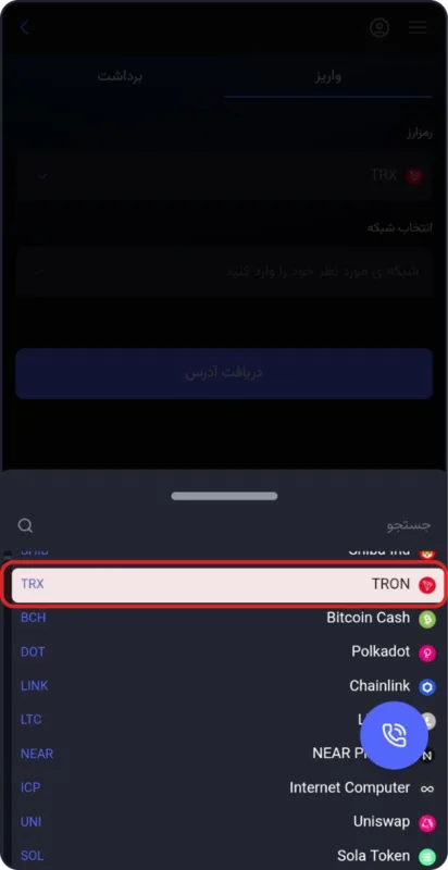 1. ارز دیجیتال مورد نظر را انتخاب کنید.