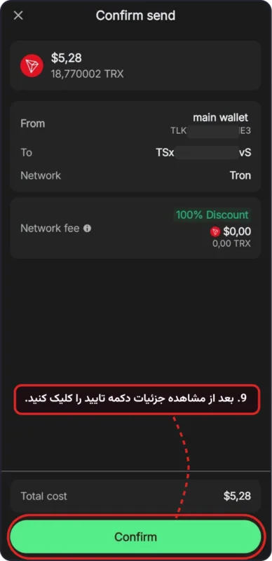پس از ارسال، تراکنش شما وارد بلاکچین می‌شود و نیاز به چند تایید (Confirmations) از سمت شبکه دارد.