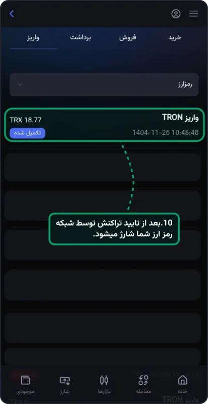 موجودی رمز ارز شما به صورت خودکار در حساب ایران بیت‌کوین شارژ خواهد شد.