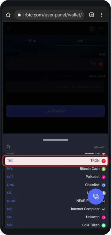 1. رمز ارز مورد نظر خود را انتخاب کنید.