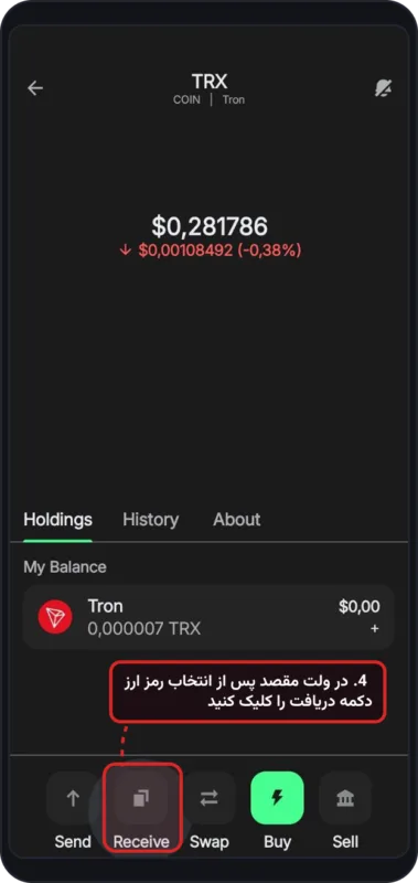 2. روی گزینه Receive (دریافت) کلیک کنید.