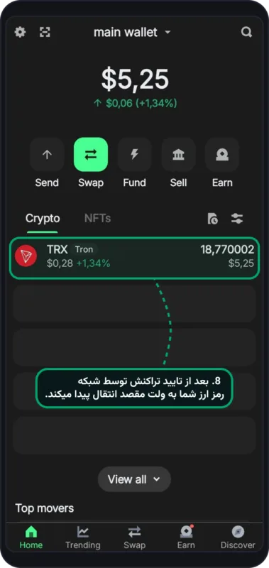 3. پس از نهایی شدن تاییدات شبکه، رمز ارز به کیف پول مقصد منتقل خواهد شد.