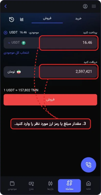 مقدار ارزی که قصد فروش دارید را وارد کنید.