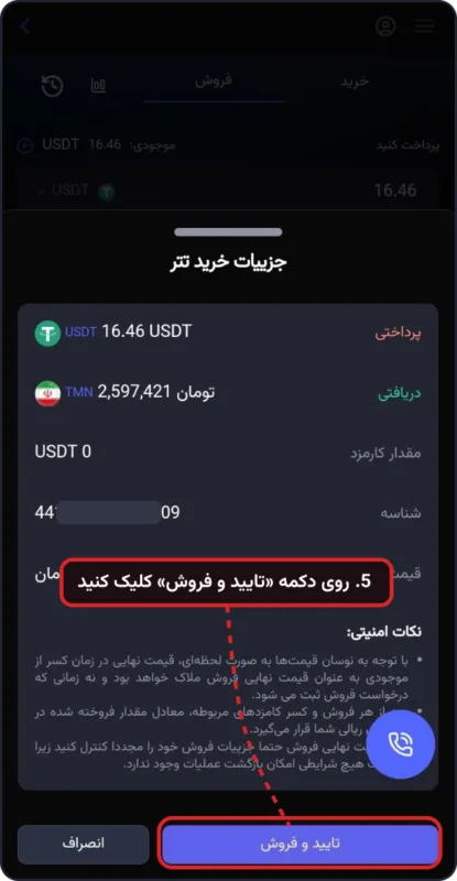 در صورت تایید، روی گزینه «تایید و فروش» کلیک کنید.