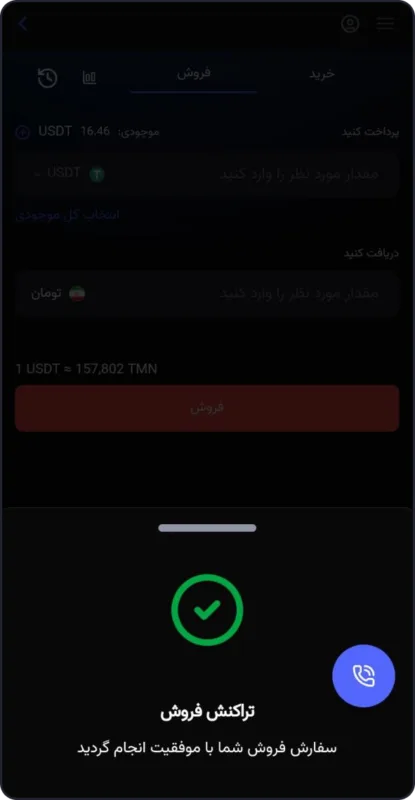 پس از مشاهده پیام موفقیت: مبلغ حاصل از فروش به صورت آنی به موجودی تومانی شما اضافه میشود میتوانید آن را برداشت کنید یا با آن ارز دیجیتال دیگری خریداری نمایید